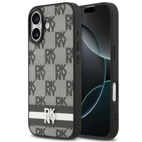 1 kép DKNY PU Leather Checkered Pattern and Stripe Apple iPhone 17 hátlap tok, fekete