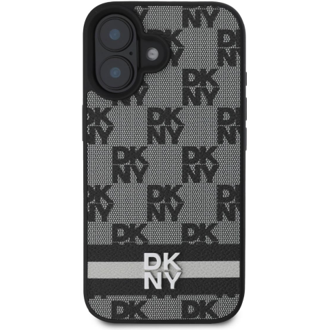 1 kép DKNY PU Leather Checkered Pattern and Stripe iPhone 16 Black tok (DKHCP16SPCPTSSK)