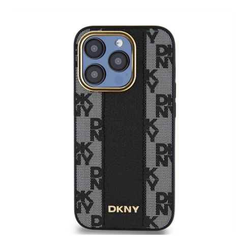 DKNY PU Leather Checkered Pattern Apple iPhone 15 Pro Magsafe tok, fekete