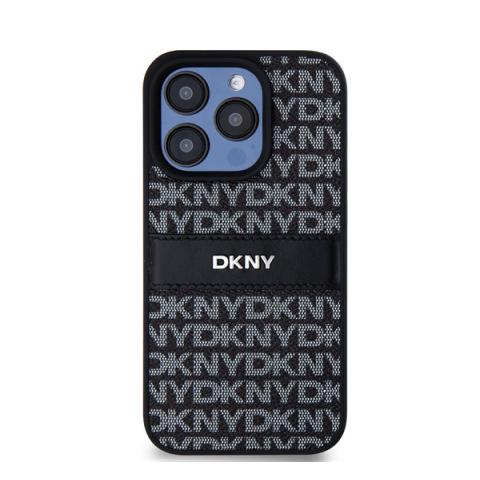 1 kép DKNY PU Leather Repeat Pattern Tonal Stripe iPhone 14 Pro hátlap tok, fekete