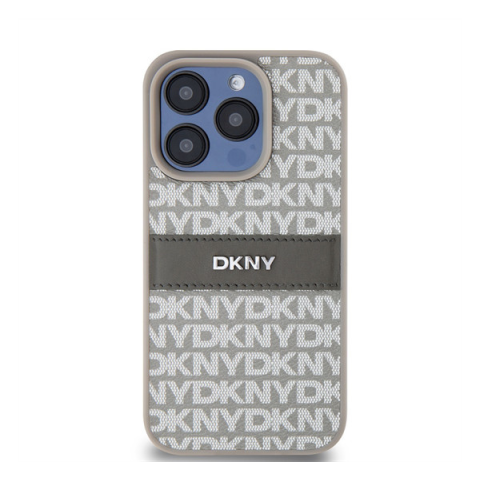 1 kép DKNY PU Leather Repeat Pattern Tonal Stripe iPhone 15 Pro hátlap tok, bézs