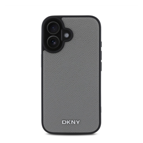 1 kép DKNY PU Leather Silver Metal Logo iPhone 16 MagSafe tok, szürke