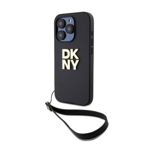 1 kép DKNY PU Leather Stack Logo Apple iPhone 14 Pro hátlap tok csuklópánttal, fekete