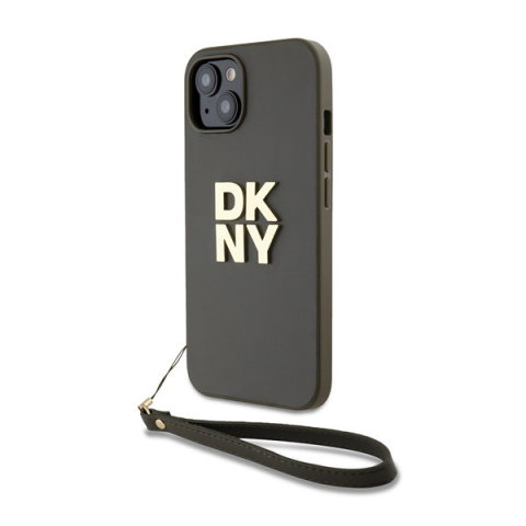 1 kép DKNY PU Leather Stack Logo Apple iPhone 15 hátlap tok csuklópánttal, barna