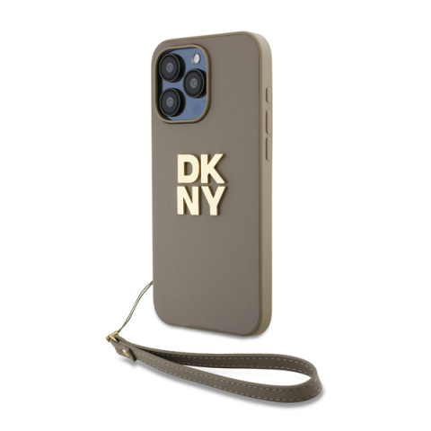 1 kép DKNY PU Leather Stack Logo Apple iPhone 15 Pro hátlap tok csuklópánttal, bézs