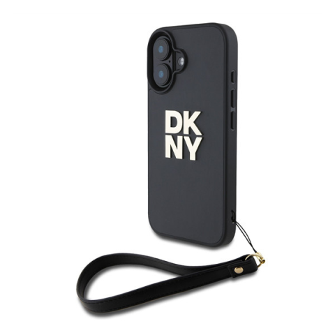 1 kép DKNY PU Leather Stack Logo iPhone 16 tok csuklópánttal, fekete