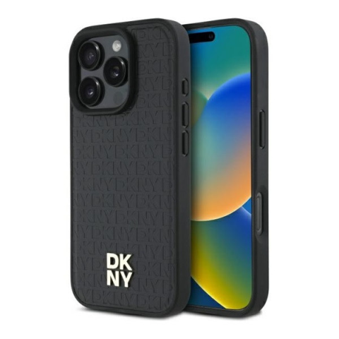 1 kép DKNY Repeat Pattern Stack Logo iPhone 16 Pro Magsafe hátlap tok, fekete DKHMP16LPSHRPSK