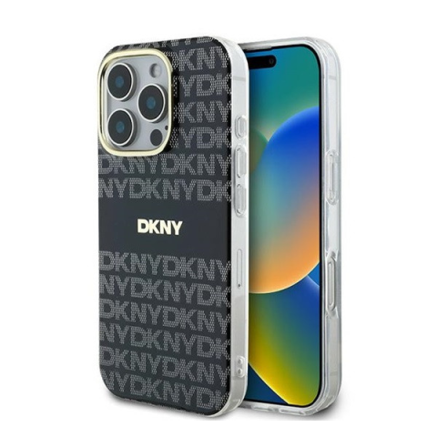 1 kép DKNY Repeat Texture Pattern With Stripe iPhone 16 Pro hátlap tok, fekete DKHMP16LHRHSEK