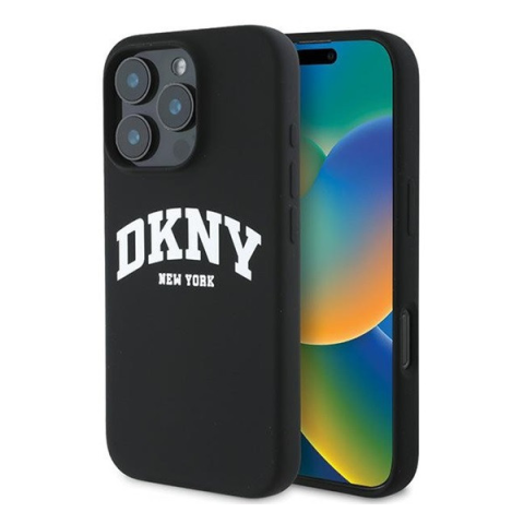 DKNY Silicone White Printed Logo iPhone 16 Pro MagSafe hátlap tok, fekete DKHMP16LSNYACH