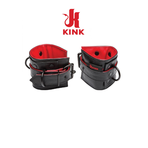 KINK - bőr kézbilincs-széles.Fekete-piros finom bőrből készült.Rendkívül igényes kidolgozás!Puha,kényelmes párnás belső.Állítható méret.Szélessége:9cm. 1pár.