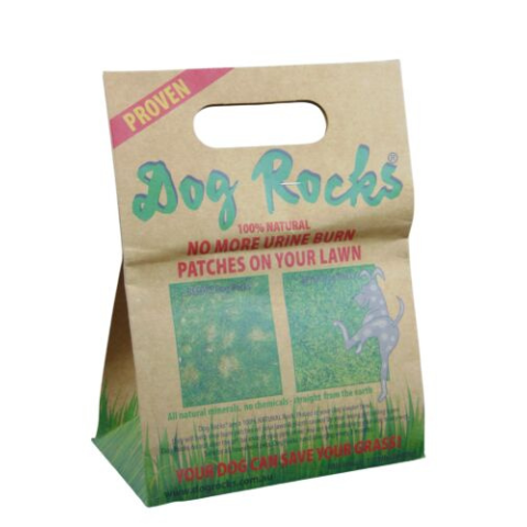 A Dog Rocks kitűnően előzi meg a foltos gyep kialakulását, melyet a kutya a vizeletével okoz.