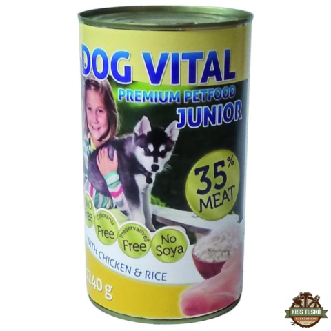 DOG VITAL Junior konzerv chicken & rice 1240gr kutyaeledel termékleírás
