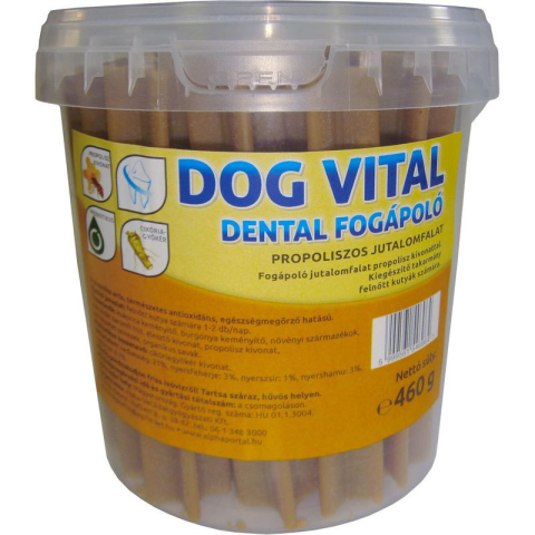 1 kép DOG VITAL Vödrös Jutalomfalat Dental Fogápoló / Propolisszal És Vaniliával 460g
