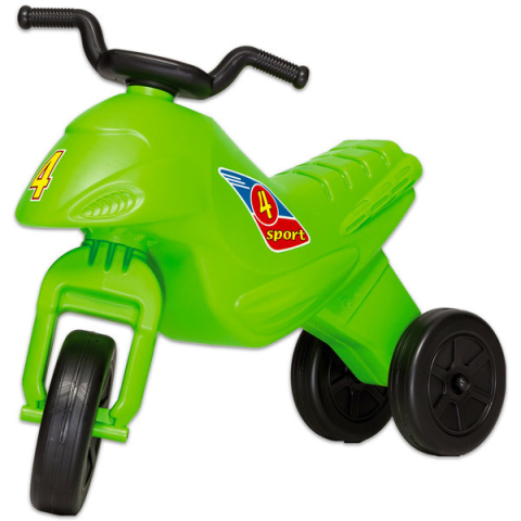 Megyünk a játszóra? Persze, csak motorral!Vagány, egyszerű felépítésű, műanyagból készült zöld ,lábbal hajtós kismotor. Az első kerék kormányozható és műanyagból készült, a motor matricákkal van díszítve.Remekül fejleszti az izomzatot és a nagymozgásokat, na meg egy kismotoron mindig könnyebb megtenni a hosszú utat a kisboltig, mint gyalog…Méretek: 60 x 28 x 44 cmÜlésmagasság: 29 cm