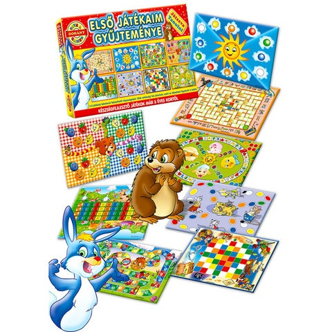 Első játékaim gyűjteményeA kifejezetten a kisebbek számára készült társasjáték csomagban olyan játékok találhatóak, melyek egyszerű szabályokkal rendelkeznek. Elsajátításuk nem okoz nehézséget már a 3 éves korú gyerekeknek sem. A vicces, élénk színű, aranyos, meseszerű elemekkel ábrázolt játéktáblákból összesen 8 különbözőt találhatsz a dobozban. A rövid játékidővel és több nehézségi fokozattal rendelkező játékok 3 éves kortól ajánlottak.