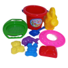 Mega homokozó szett. 9 darabból álló készlet, mely minden kicsi gyermek kedvence lesz a homokozóban. A nagy méretű vödör segítségével hamar elkészül a homokvár. A csomagban különböző formák vannak összeállítva.