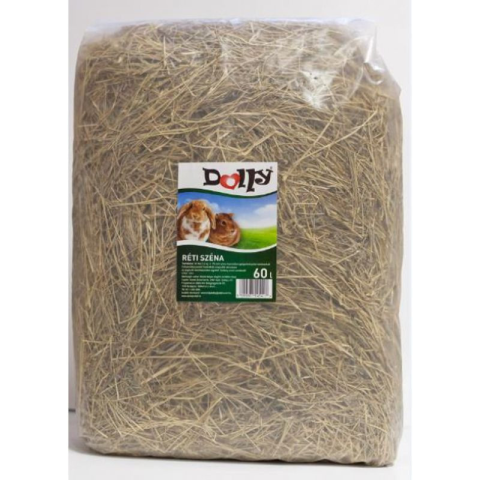 "Dolly Széna 60l A széna a kisállatok és a nyulak étrendjének egyik legfontosabb összetevője. A Dolly réti széna magas rosttartalmának köszönhetően a segíti az emésztés, a folyamatosan növekvő fogakat megfelelően koptatja. Gondoskodjon róla, hogy az állat előtt mindig legyen elegendő mennyiségű széna és friss, tiszta ivóvíz.