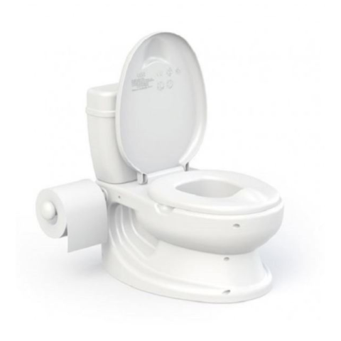 Szokj át a pelenkáról a bilire A WC alakú bili öblítés hangjával végre úgy csinálhatsz, mint a nagyok Ha érzed a természet hívó erejét, próbálj mielőbb a fürdőszobába menni, hogy a mini WC-re ülve könnyíthess magadon. Ha végeztél, használd a papírgurigát, majd utánozd szüleid mozdulatait, és nyomd meg a tartály gombját, hogy leöblítsd a végtermékedet (a játékban nincs víz). A WC alakú bili belső edénye k