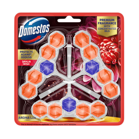 DOMESTOS Aroma Lux WC frissítő blokk, Dahlia Wish, koncentrált illóolajokkal (3x50 g) tisztító- és takarítószer, higiénia termékleírás