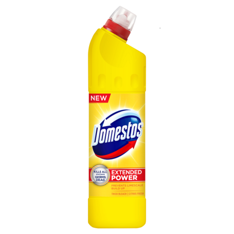 Domestos, 750 ml-es kiszerelésű klóros fertőtlenítő hatású tisztítószer. Széleskörű felhasználhatóság háztartási és intézményi célra egyaránt. Ragyogó fehérség a szanitereken, padlóburkolatokon, a konyhában és a WC-ben. Baktériumölő hatásával elpusztítja a kórokozókat. Tisztít és fertőtlenít egyszerre. Irritatív, környezetre veszélyes.