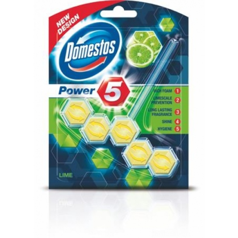A Domestos Power5 WC frissítő blokkja segít megelőzni a koszt és a vízkőlerakódásokat a takarítások között is. Minden egyes öblítés után bőséges habot hagy maga után, amely segít megakadályozni a vízkőlerakódást, eltűntetni a koszt, és ragyogóvá tenni a WC kagylót, amely hosszan tartó kellemes illatot áraszt magából. -segít a vízkőlerakódás megelőzésében -higiénikus tisztaság -lime illattal -erős habzás -hosszantartó frissesség -tiszta és csillo