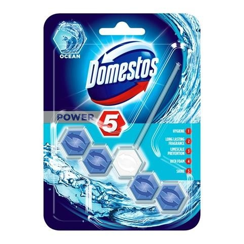 A Domestos Power5 WC frissítő blokkja segít megelőzni a koszt és a vízkőlerakódásokat a takarítások között is. Minden egyes öblítés után bőséges habot hagy maga után, amely segít megakadályozni a vízkőlerakódást, eltűntetni a koszt, és ragyogóvá tenni a WC kagylót, amely hosszan tartó kellemes illatot áraszt magából.