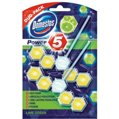 WC fertőtlenítő, 2 db-os, DOMESTOS Power 5, lime (KHT538) A Domestos Power5 WC frissítő blokkja segít megelőzni a koszt és a vízkőlerakódásokat a takarítások között is. Minden egyes öblítés után bőséges habot hagy maga után, amely segít megakadályozni