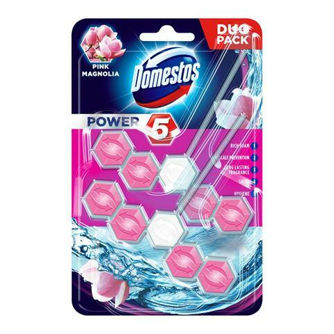 WC fertőtlenítő, 2 db-os ,DOMESTOS Power 5, pink magnólia (KHT631) A Domestos Power5 WC frissítő blokkja segít megelőzni a koszt és a vízkőlerakódásokat a takarítások között is. Minden egyes öblítés után bőséges habot hagy maga után, amely segít megaka