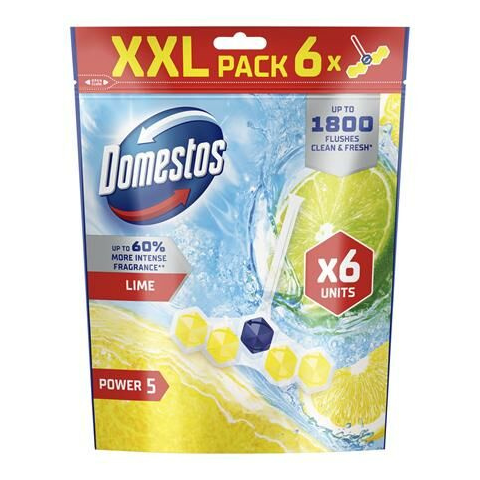 Teljes DOMESTOS WC frissítő blokk, 6 db-os, DOMESTOS "Power 5", lime termékleírás