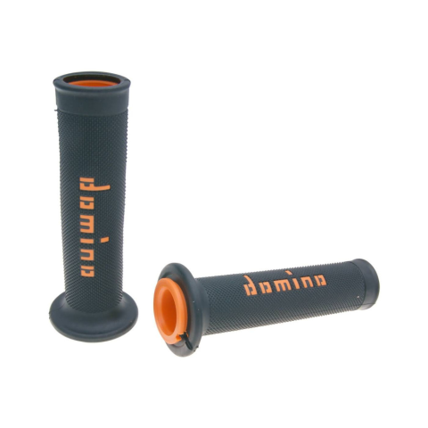 A Black / orange színű Domino úton tapadó kormány markolat készlet ideális 22 mm-es kormányra, amelyeket sok európai robogó, váltós moped, quad és ATV modellen használnak alapértelmezettnek.Ez a kormány markolat készlet kiváló minőségű anyagokból készült,