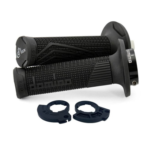 D100D-LOCK fekete markolatok egyedi húzópályás csigávalPár D-Lock markolat a „Lock On” rögzítő rendszerrel.„HIGH GRIP” technológia: A dörzslés - a Domino szabadalmazottja - maximalizálja a tapadást bármely irányban és az tapadást a markolatok és a kesztyűk között Egy mutató-ujj párnázat és a hátsó 3 csíkos waffle növeli a tapadást Anyag: Termoplasztikus Szín: Fekete Hossz: bal 125 mm / jobb 130 mm Kormányátmérő: 22,0 - 22,3 mm Markolat hossza: 116 mm M