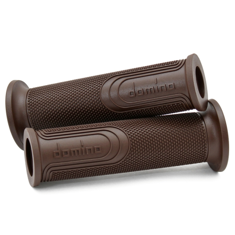 Egy pár kormány fogantyú, melyet termoplasztikus gumiból készítettek, kúpos dudorokkal. Anyag: Termoplasztikus gumi Szín: barna Hossz: 120 mm Vég: Nyitott Kormány/karburátor cső átmérő: 22/26 mm Dudor átmérő: 48 mm Kormány átmérő Szerelt dudorral: 33 mm
