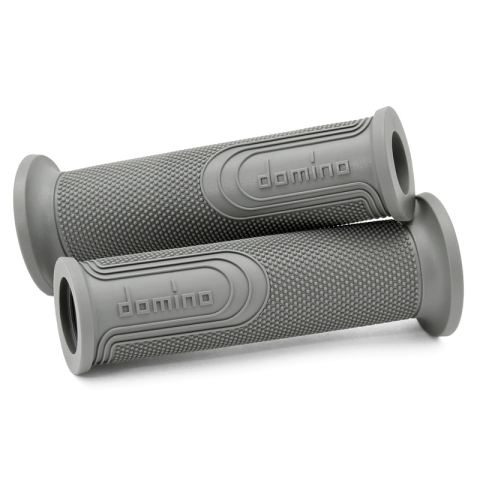 Egy pár kormány fogantyú, melyet termoplasztikus gumiból készítettek konikus dudorokkal. Anyag: Termoplasztikus gumi Szín: szürke Hossz: 120 mm Vég: Nyitott Kormány/karburátor cső átmérő: 22/26 mm Flange átmérő: 48 mm Kormány átmérő Felszerelt dudor: 33 mm