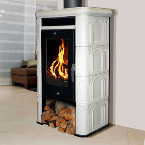 Bergamo II. mobilkandalló csontszínű kerámiaburkolattal. Könnyedén mozgatható, fa tüzelésű készülék fatároló résszel és 150 mm-es átmérőjű felső füstcsőcsatlakozóval. Teamelegítő csempével a tűztér felett. Fűtési teljesítménye: 7 kW. Lemeztűztere 2,5 cm vastag samott lapokkal bélelt. Huzatigény: 12 Pa.
