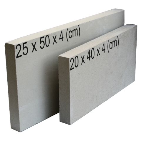 Samott tábla fehér 25x50x4 cm, kandallóhoz, kályhához, grillsütőhöz és pizza sütőhöz. Alumínium.oxid tartalom 12,1%, vízfelvétel 9,02%, tűzállóképesség 1150°C.
