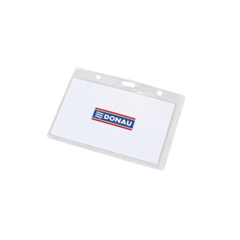 Azonosítókártya tartó, 105x65 mm, hajlékony, fekvő, DONAU - PP alapanyagból készült - oldalt nyitott - puha, hajlítható kivitelezés - fűzőlyuka segítségével csíptethető, illetve nyakba akasztható - belső méret: 97x61 mm (ez az inzert mérete, ami benne