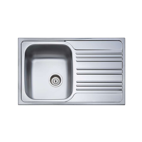 Rozsdamentes acél mosogató 1 medencével és tálcával - 780x500 mm Ez a modern, rozsdamentes acél mosogató tökéletes választás a kis konyhákba is. Praktikus 1 medencés kialakítása és a beépített tálca elegendő helyet biztosít az edények mosogatásához é...