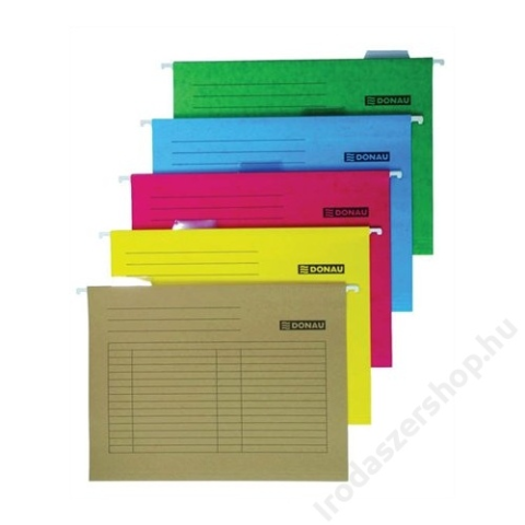 Függőmappa, karton, A4, DONAU, piros (D7410P25) - kiváló minőségű, 230 g/m2 karton alapanyag - A4 méretű dokumentumok tárolására - a színek megkönnyítik a rendszerezést - feliratozható, vonalazott felület - 6 színváltozat - méret: 320 x 240 mm Gyártó/