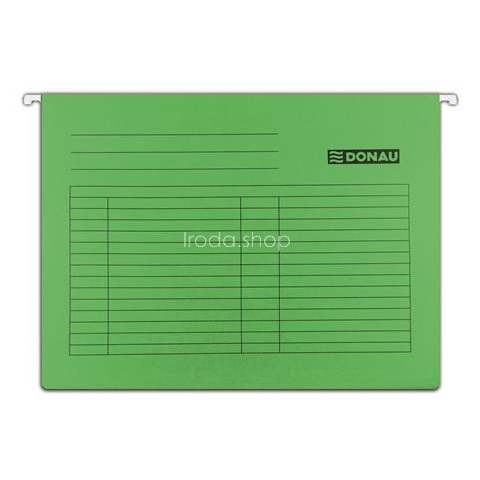 Függőmappa, karton, A4, DONAU, zöld - kiváló minőségű, 230 g/m2 karton alapanyag - A4 méretű dokumentumok tárolására - a színek megkönnyítik a rendszerezést - feliratozható, vonalazott felület - 6 színváltozat - méret: 320 x 240 mm Gyártó/első EU forg