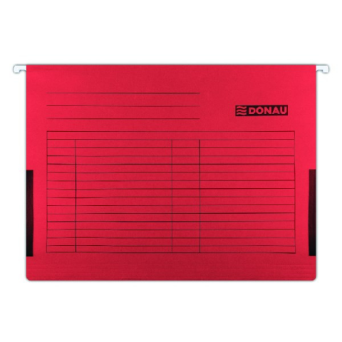 Függőmappa oldalvédelemmel DONAU A/4 karton piros 25 darabos Függőmappák dokumentumok nyilvántartásához és tárolásához. A belsejében lévő tömör fémrúd meghosszabbítja a termék élettartamát. Az előnyomtatott táblázatnak köszönhetően a teljes felülete