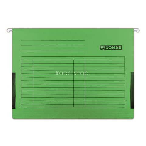 Függőmappa, oldalvédelemmel, karton, A4, DONAU, zöld - kiváló minőségű, 230 g/m2 karton alapanyag - A4 méretű dokumentumok tárolására - a színek megkönnyítik a rendszerezést - oldalvédelem (a dokumentumok nem esnek ki) - vonalazott rész feljegyzéseknek