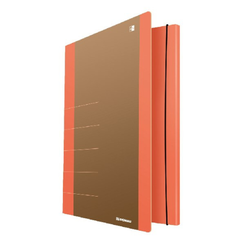 Gumis mappa DONAU Life A/4 karton neon narancssárga-barna Elegáns gumis mappa kétszínű kivitelben, a barna és neon színek kombinációjában, dokumentumok tárolásához és szállításához. Egyesíti a magas minőséget, az esztétikát és a funkcionalitást, ráadás