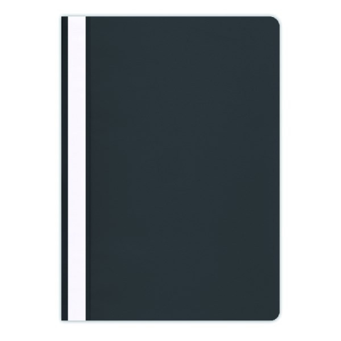Gyorsfűző DONAU A/4 műanyag fekete 10 darabos Klasszikus PP gyorsfűző dokumentumok nyilvántartásához átlátszó, narancsos fedlappal, színes hátlappal, kivehető, kétoldalas, feliratozható oldalcsíkkal.