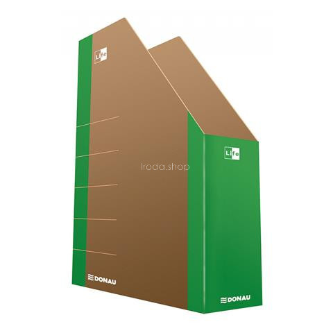 Iratpapucs, karton, 80 mm, DONAU Life, neon zöld - A4 méretű dokumentumok tárolására alkalmas - alapanyag: 1,2 mm vastagságú karton (800 g/m2) - FSC tanúsítvány - gerincvastagság: 80 mm - kapacitás: kb. 500 ív 80 g papír - feliratozható gerinc - könnye