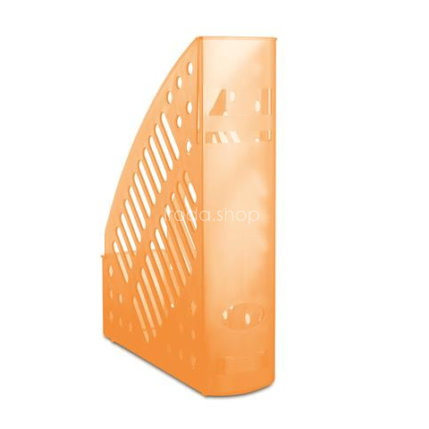 Iratpapucs, műanyag, 70 mm, DONAU, áttetsző narancs Napi használatú A4 méretű iratok, katalógusok tárolására -egyszerű kivitelű, rácsos oldalfalú iratpapucs -újrahasznosítható műanyag alapanyag -kapacitás: 700 lap -gerincmérete 70 mm -kihúzólyuk a kö