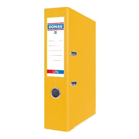 Iratrendező DONAU Life A/4 75 mm PP/karton neon sárga Elegáns emelőkaros iratrendező fényes felülettel dokumentumok tárolásához. A tartós kartonpapír vékony fóliával bevont, mely védelmet nyújt a nedvesség és a kopás ellen, valamint meghosszabbítja az
