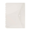 Irattartó tasak, A4, PP, patentos, lefűzhető, DONAU, áttetsző -A4 méretű dokumentumok tárolására -rugalmas, áttetsző polipropilén alapanyag -lefűzhető -patent segítségével oldalt könnyen záródik -alapanyaga 200 mikron vastag -a behelyezett dokumentumok