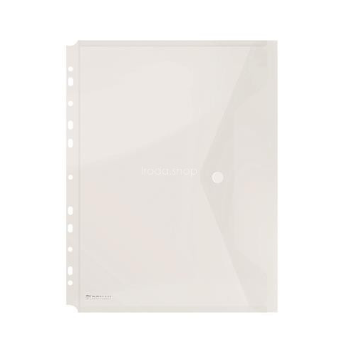 Irattartó tasak, A4, PP, patentos, lefűzhető, DONAU, áttetsző -A4 méretű dokumentumok tárolására -rugalmas, áttetsző polipropilén alapanyag -lefűzhető -patent segítségével oldalt könnyen záródik -alapanyaga 200 mikron vastag -a behelyezett dokumentumok