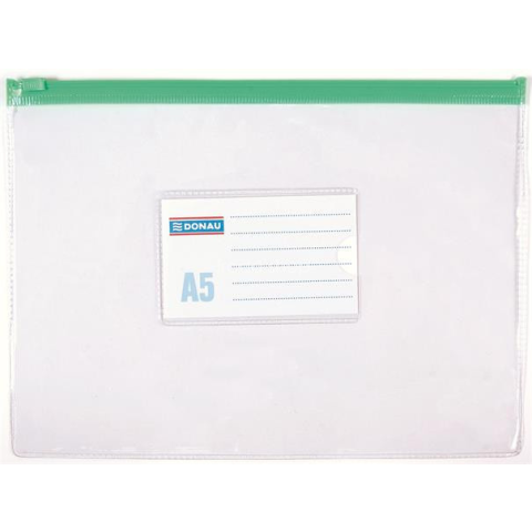 Irattartó tasak, A5, PVC, simítózáras, DONAU - A5 méretű dokumentumok és kisebb kiegészítők (toll, számológép, jegyzetek) tárolására - erős PVC alapanyag - a simítózárnak köszönhetően az iratok nem sérülnek és nem vesznek el - vegyes színben (kék, zöld