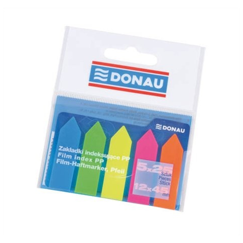 1 kép DONAU Jelölőcimke, műanyag, nyíl forma, 5x25 lap, 12x45 mm, DONAU, neon szín